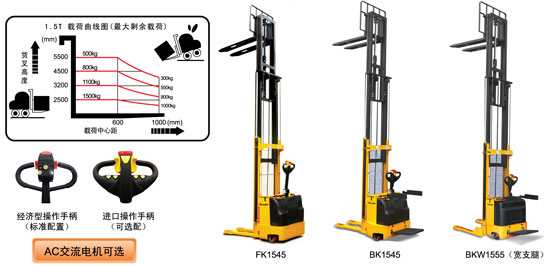● 配置進口的泵站和驅動輪以及進口的電控系統.性能卓越 ● 配置大容量的牽引電池,充電方便快捷,電量持久,帶電量顯示表,低電壓報警燈 ● 采用特殊工藝加工成型的門架.安全美觀.堅固耐用 ● 帶有低電壓保護功能,在蓄電池電壓短時間低于規定電壓 時.低電壓保護功能可保證電池及電器元件的安全。 ● 帶有自由提升功能,可進入集裝箱內操作,提高倉儲工作的效能 ● 符合歐洲EN1757-1:2001,EN1727標準 ● 必須嚴格按照堆高車的載荷曲線圖中所允許的剩余載荷進行操作,嚴禁超載使用,確保安全