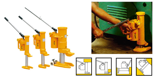 ● 獨有技術的高品質油缸,結構穩定 ● 油缸可360°旋轉,兩個工作面,可用于多種場合 ● 適用于大型設備的安裝起運,具有過載保護功能 ● 符合美國ASME/ANSI B 30.1.1986標準,通過CE安全認證 警告 為避免人身傷害或對設備的損害 ● 禁止超載使用 ● 禁止在已被提升的載荷上增加新的載荷 ● 禁止在不穩定或危險的位置上使用 ● 必須在平坦的并且可支撐載荷的表面使用千斤頂 ● 載荷必須在提升過程中保持穩定 ● 不穩定的載荷可能導致千斤頂傾倒 ● 禁止使用已損壞的、不合格的或老化的千斤頂 ● 禁止提升人,當千斤頂載荷上有人時禁止提升 ● 禁止利用趾形支撐的末端提升載荷時;必須讓趾形支撐完全與載荷接觸